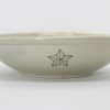 戦時中に作られた、黄磁(黄色がかった磁器)の平鉢です。星のマークがあるため旧陸軍用のものです。産地は佐賀県と思われます。(底裏に「肥」の文字があるため。)