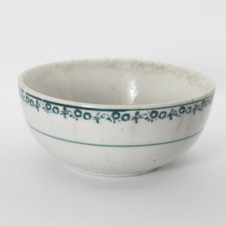もともと軍用の食器は破損防止のため琺瑯で作られていましたが、昭和20年段階では食器用の金属も底をついたため陶磁器に切り替えられることになり、これらが製造されました。この食器は実際に納品されなかったデッドストックなため、未使用新品です。