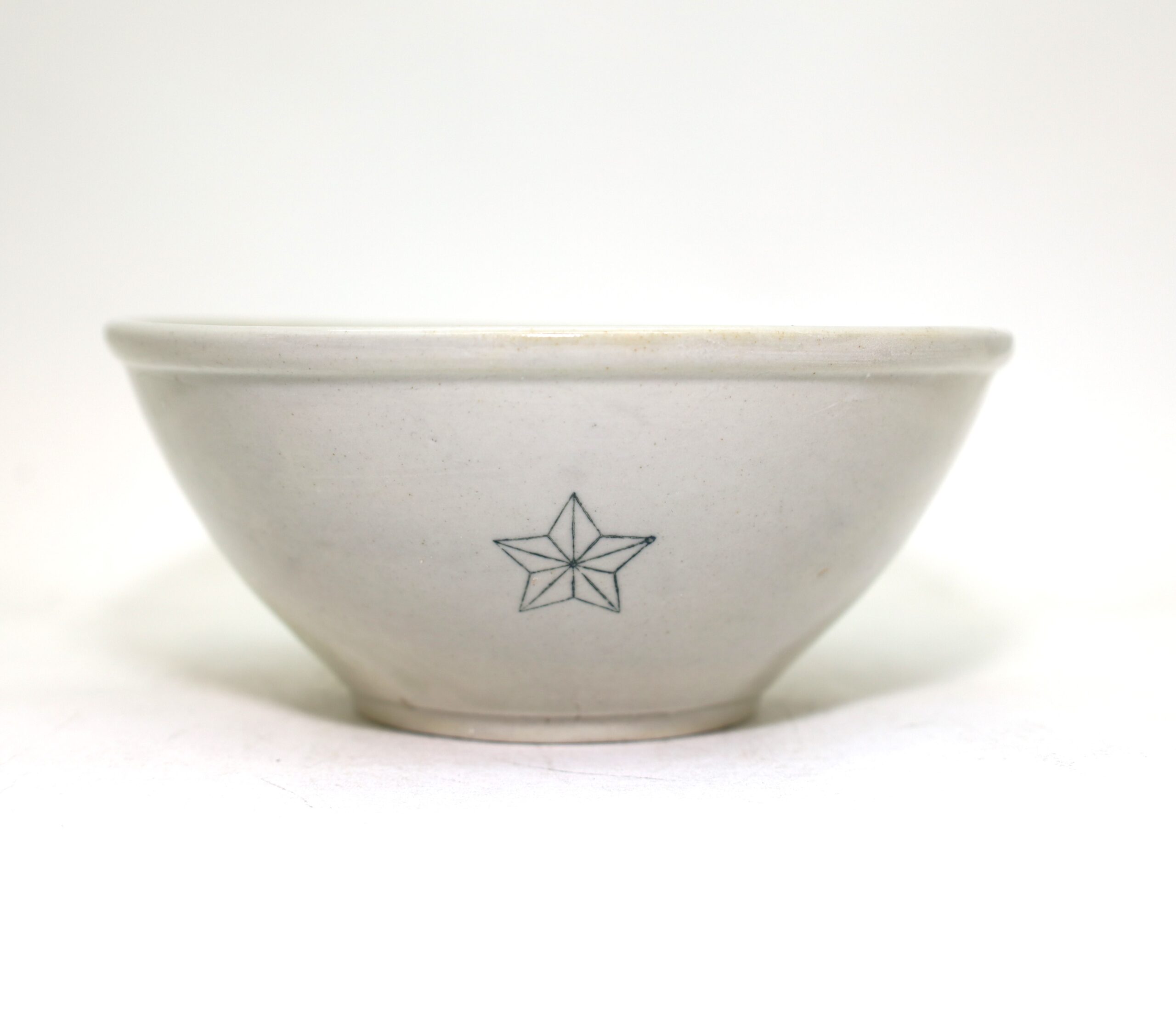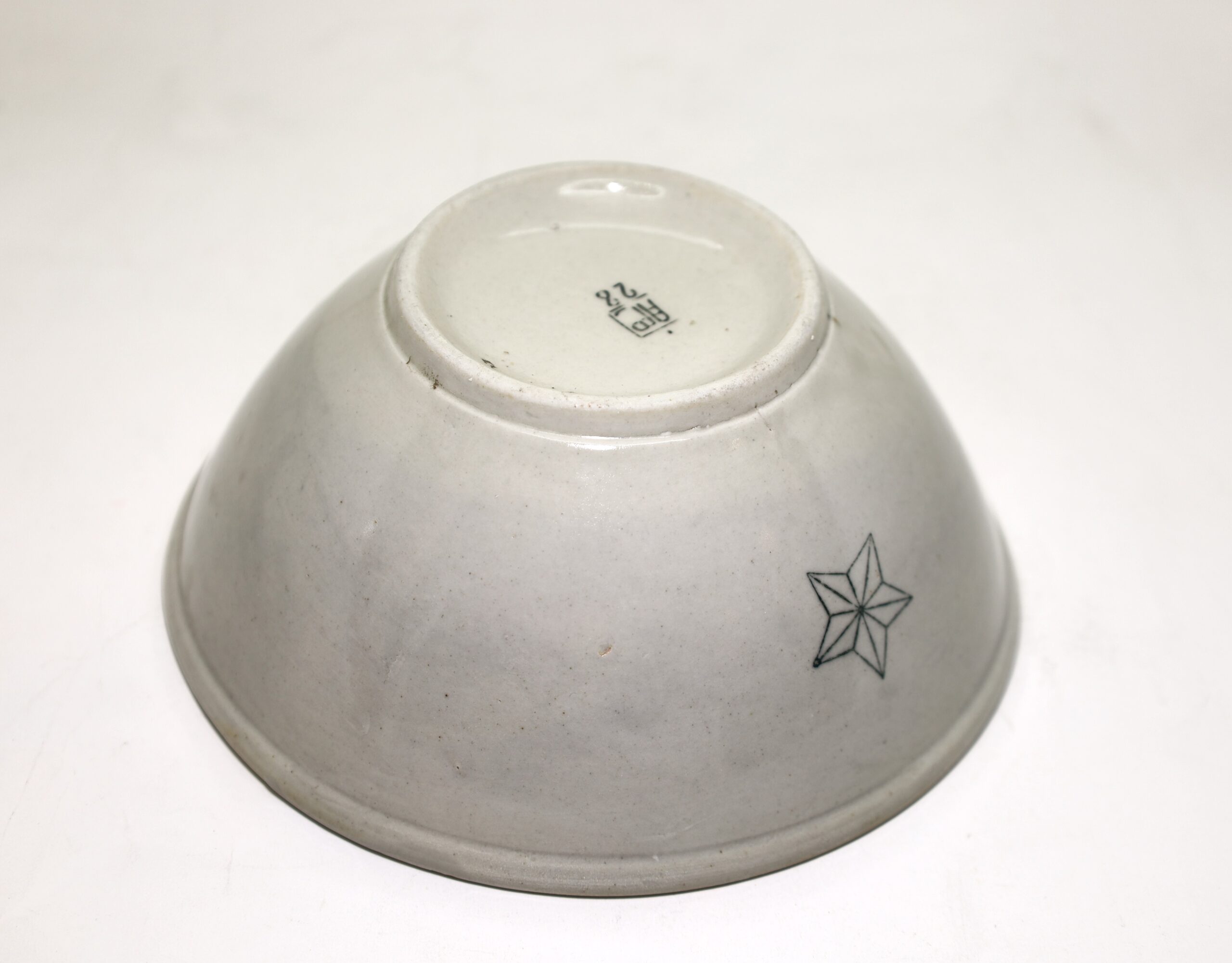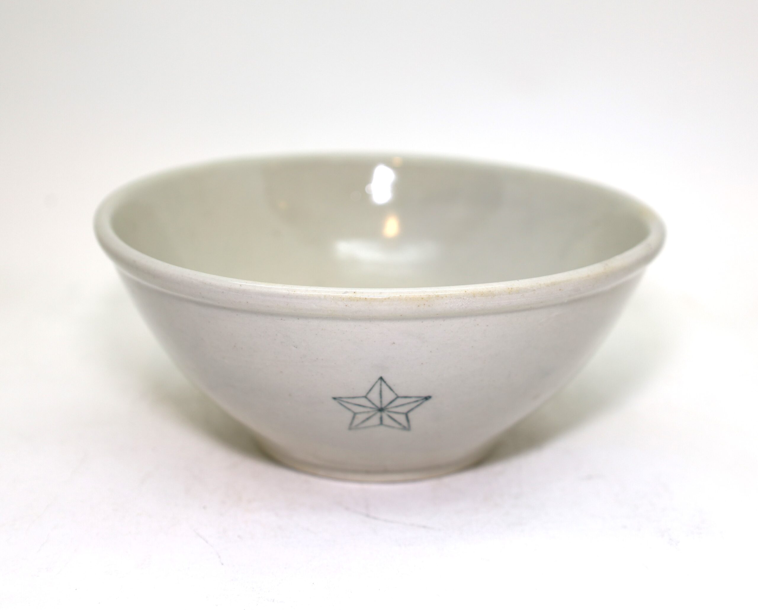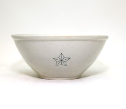 戦時中に作られた、黄磁(黄色がかった磁器)の深鉢(丼)です。星のマークがあるため旧陸軍用のものです。産地は佐賀県と思われます。(底裏に「肥」の文字があるため。)