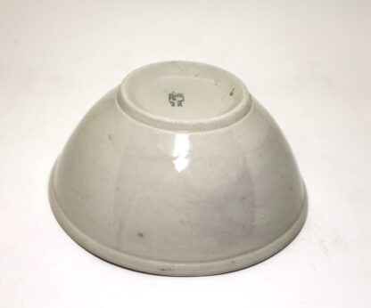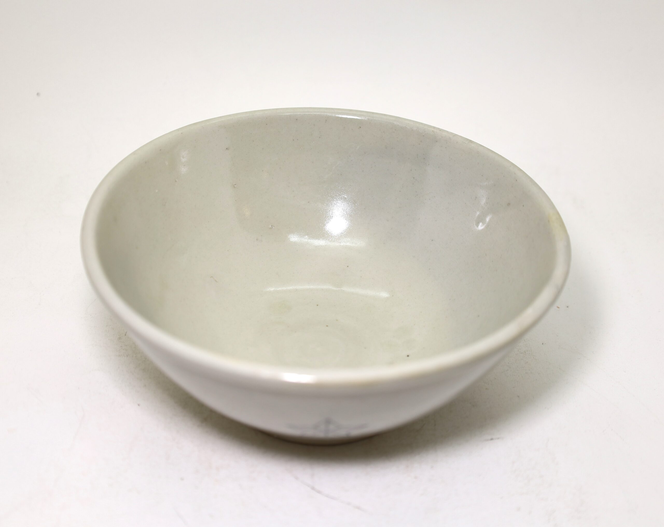 もともと軍用の食器は破損防止のため琺瑯で作られていましたが、昭和20年段階では食器用の金属も底をついたため陶磁器に切り替えられることになり、これらが製造されました。この食器は実際に納品されなかったデッドストックなため、未使用新品です。