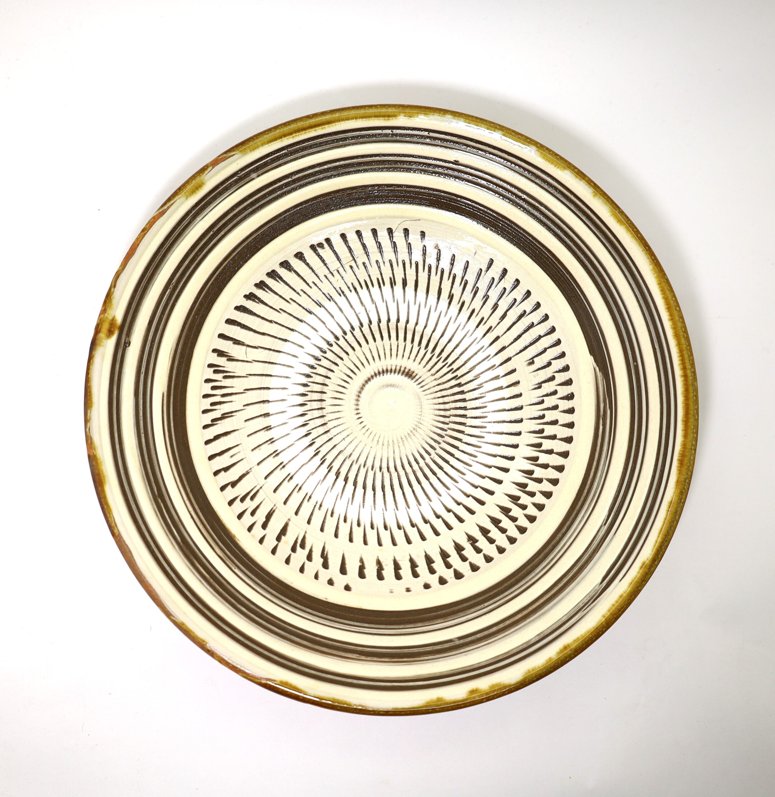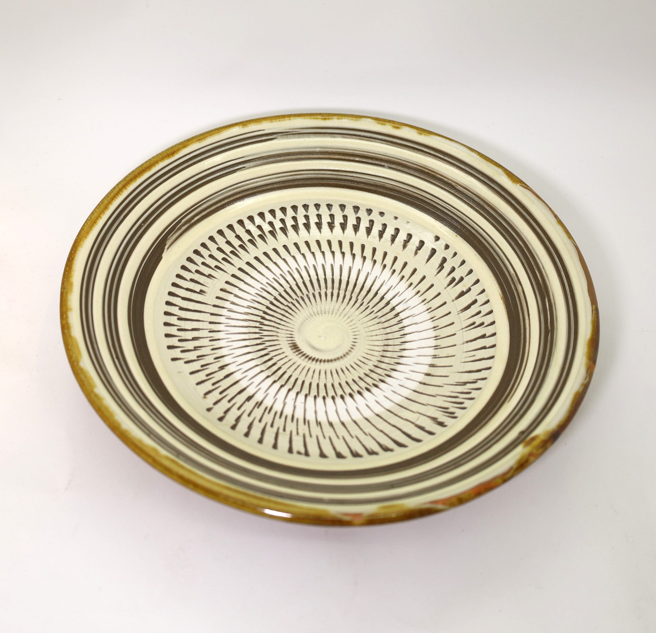この8寸皿は、伝統的なカンナ模様を施し、縁には筆を入れた、洗練された雰囲気のリム皿です。和洋問わず使えます。