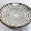 この大皿は、直径41㎝ある大ぶりで、飾り皿としても、鍋ものの素材を盛ったりする盛り皿としても使えます。伝統的なとびカンナと櫛目模様を組み合わせ、緑釉と飴釉を流して立体感を表現した品は、細かい模様のわりに落ち着いて見え、飽きません。