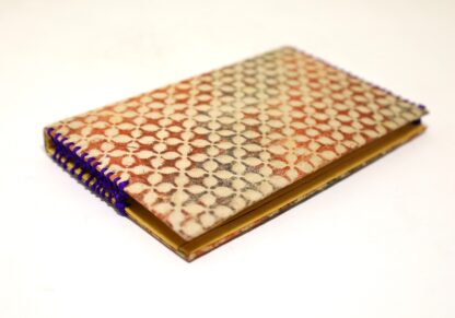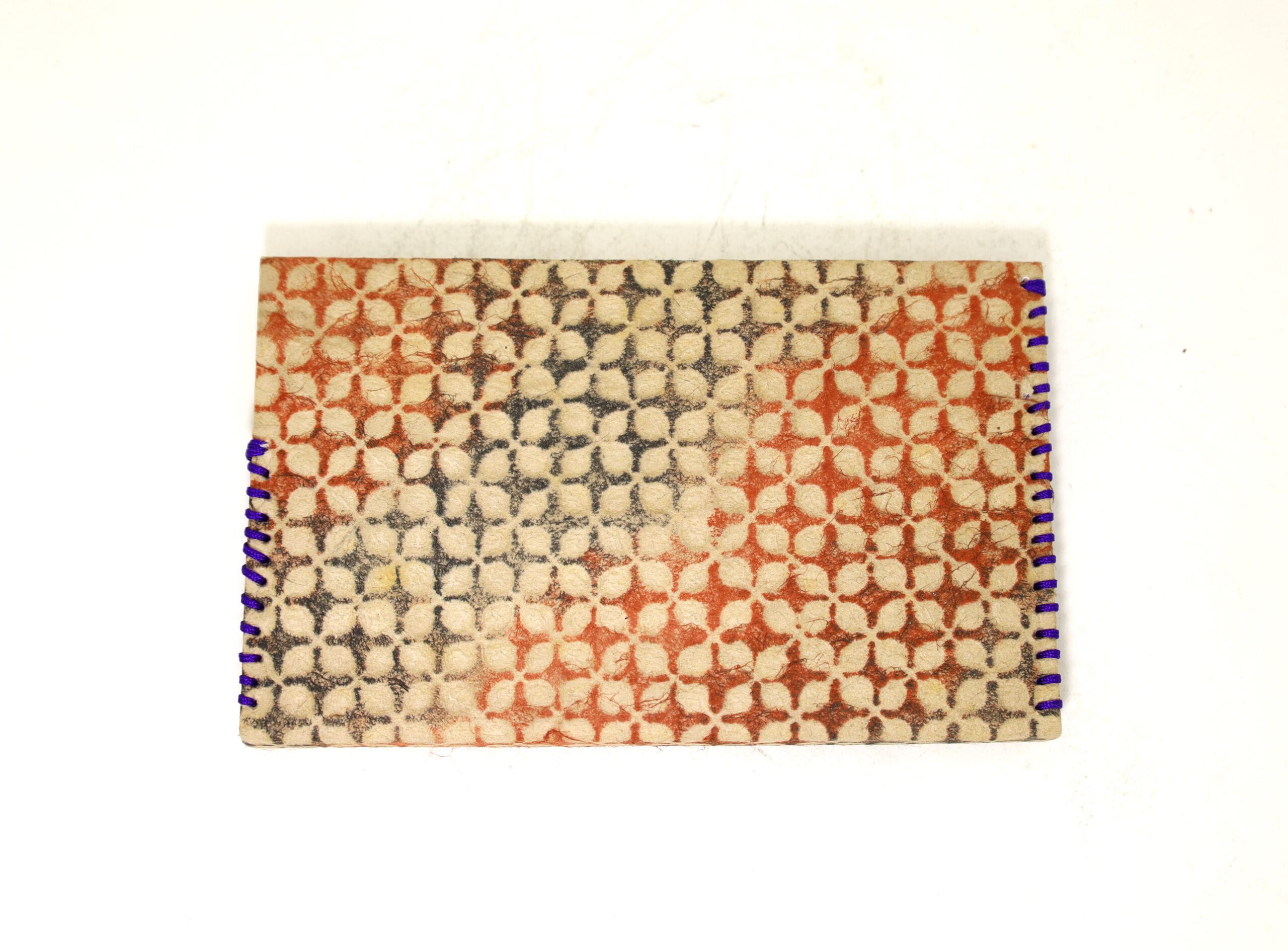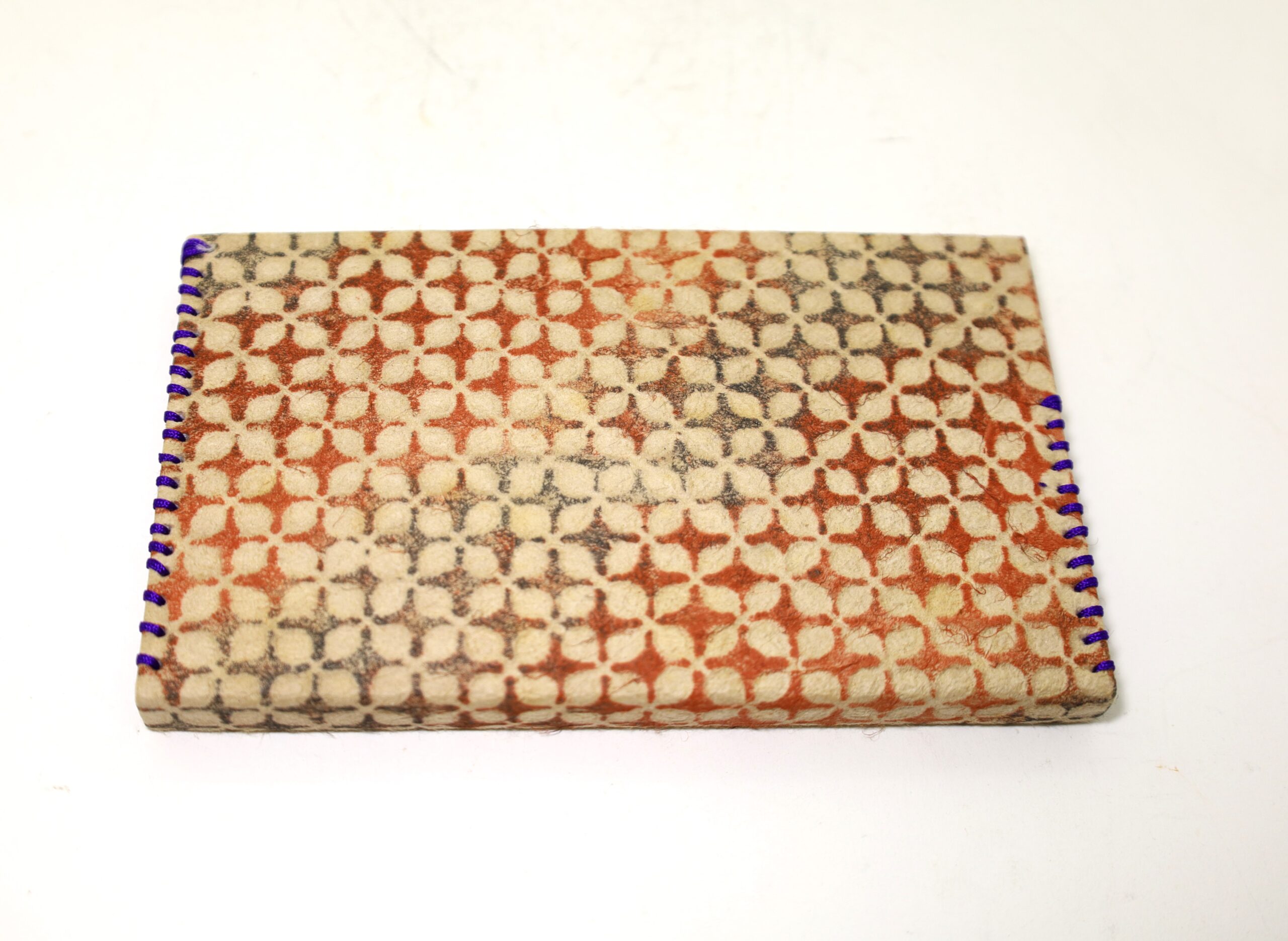 手で漉いた紙は、模様を彫った木型に乗せて叩くことでエンボス加工のような凹凸を付け、版画のように凸部分に色を付けてあります。これは、凹凸の型を付けても破れないほど丈夫な素材を使っているという事を証明するためでもあります。
