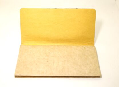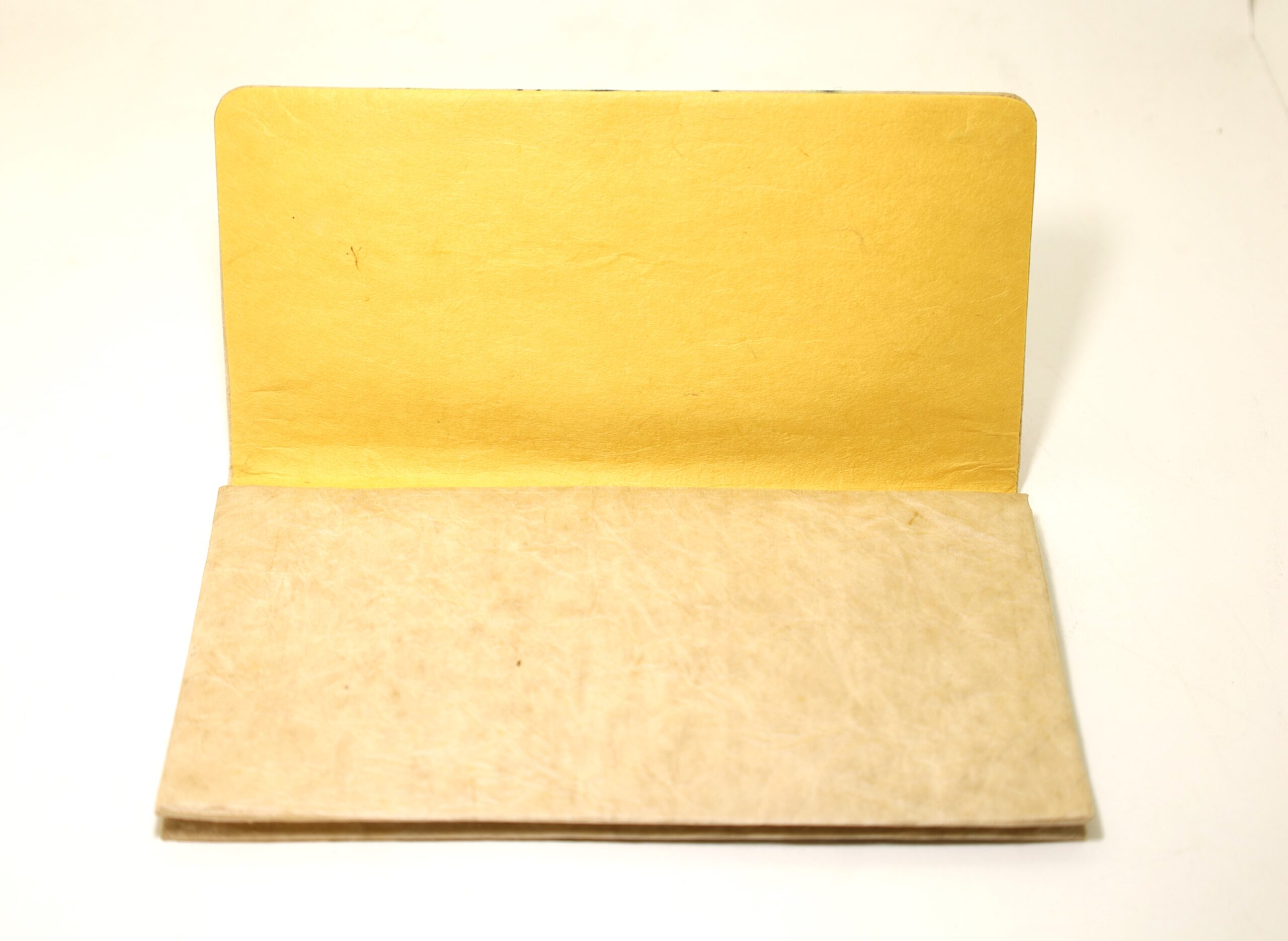 手で漉いた紙は、模様を彫った木型に乗せて叩くことでエンボス加工のような凹凸を付け、版画のように凸部分に色を付けてあります。これは、凹凸の型を付けても破れないほど丈夫な素材を使っているという事を証明するためでもあります。